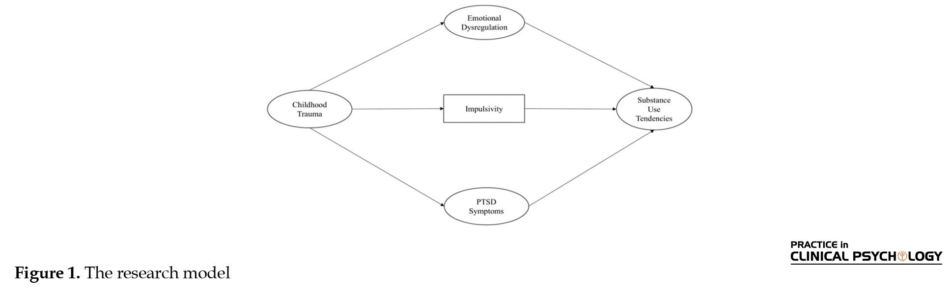 The mediating effects of emotion regulation, impulsivity, and PTSD symptoms were also confirmed. The direct impact of emotional dysregulation on SUT was significant (β=0.381, P<0.001), which concurs with the traumatic childhood findings that poor emotional regulation is a mediator of the relationship between childhood trauma and substance use (Koçak & Cagatay, 2024; Schaefer et al., 2021; Barahmand et al., 2016). Similarly, the relationship between trauma and substance use was mediated by impulsivity (β=0.104, P=0.006), which is in line with the results of studies that mark impulsivity as a neurocognitive mechanism between childhood adversity and substance use (Morris et al., 2020; Hosking & Winstanley, 2011; Brown et al., 2022). The significance of the mediating effect of PTSD symptoms was also found to be the highest (β=0.645, P<0.001), making the self-medication hypothesis, according to which individuals use substances to get rid of the distress caused by traumatic experiences, accurate (Rosenkranz et al., 2014; Patock-Peckham et al., 2020; Park et al., 2019; Hannan et al., 2017).
