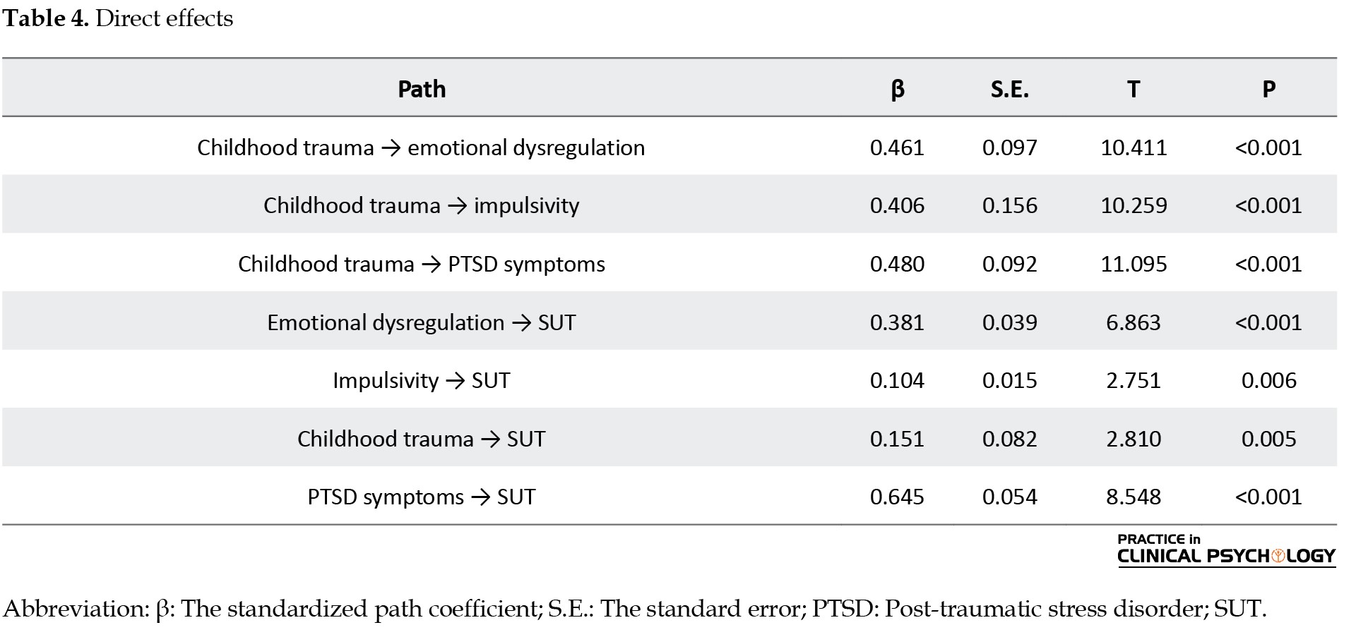 • PTSD symptoms to SUT: (β=0.645, SE=0.054, t=8.548, P<0.001)