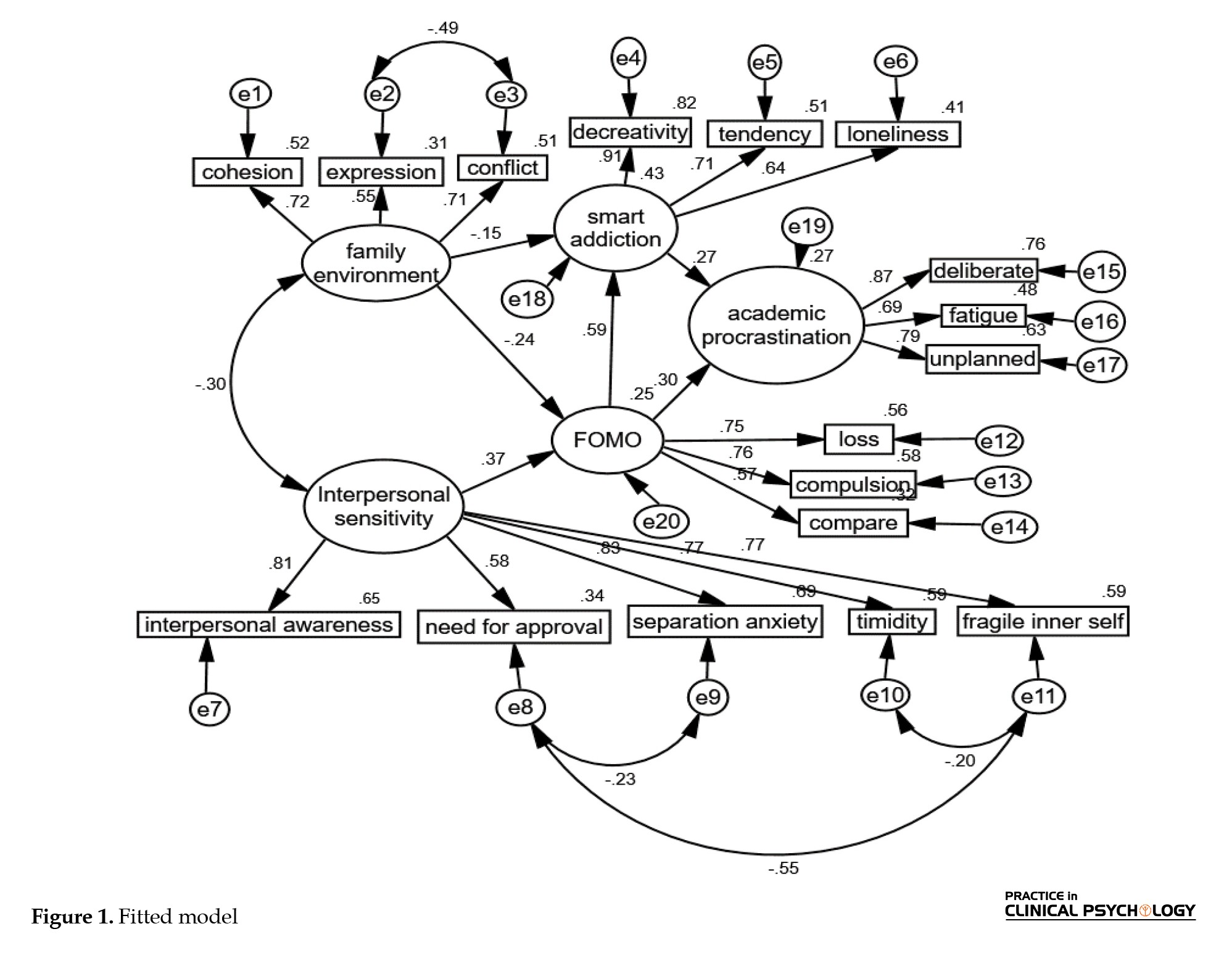 The results of the structural equation model also indicated that FoMO significantly mediated the relationship between interpersonal sensitivity, family environment, and academic procrastination. To our knowledge, this specific mediation has not been reported in previous research in either Persian or English. This finding aligns with Lin et al. (2021), who showed that FoMO mediates the relationship between interpersonal sensitivity and smartphone addiction. Individuals with high interpersonal sensitivity—characterized by dependence on others, low self-esteem, and limited self-worth—often struggle to form healthy social relationships (Boyce & Parker, 1989). In cyberspace, they may excessively monitor friends’ activities, experiencing anxiety and tension about missing out on social interactions. This constant engagement with social networks can consume time and interfere with academic responsibilities. Similarly, adolescents from conflictual or cold family environments may seek refuge online, prioritizing interactions with peers over family communication. Such patterns increase opportunities for social comparison, reduce psychological well-being, heighten susceptibility to social rejection, and ultimately contribute to poorer academic performance (Abel et al., 2016; Twenge et al., 2019).