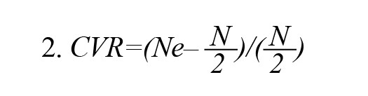 To compute the CVR, the necessity and importance of each item were evaluated on a three-point Likert scale by eight psychologists (Yamada et al., 2010). CVR scores range between -1 and +1, with higher scores indicating a greater degree of expert consensus. To compute the CVR, the Equation 2 is applied: