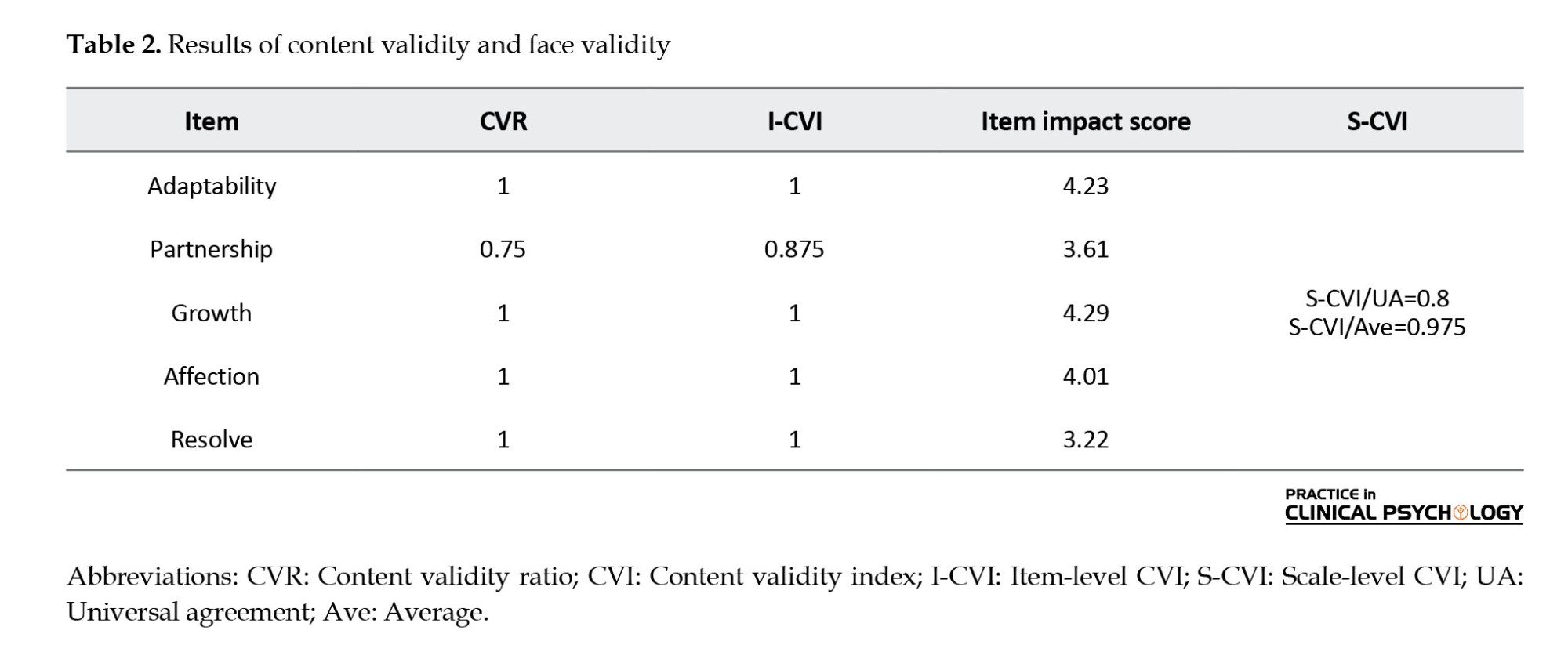 Shi, J., Mo, X., & Sun, Z. (2012). Content validity index in scale development. Yi xue ban, 37(2), 152-155. [DOI:10.3969/j.issn.1672-7347.2012.02.007] [PMID]