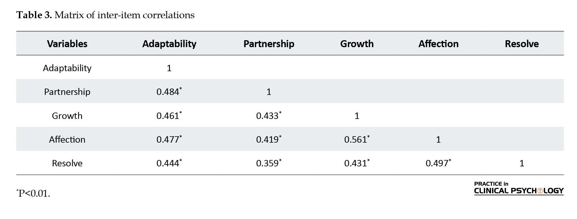 The data obtained in this study reveal that the Persian version of the family APGAR questionnaire, despite certain aspects that could be improved, such as the AVE value in the confirmatory factor analysis, meets conventional standards for content and construct validity, alongside consistent reliability indices. This instrument serves as an efficient measure for assessing family functioning among the Iranian adult population.