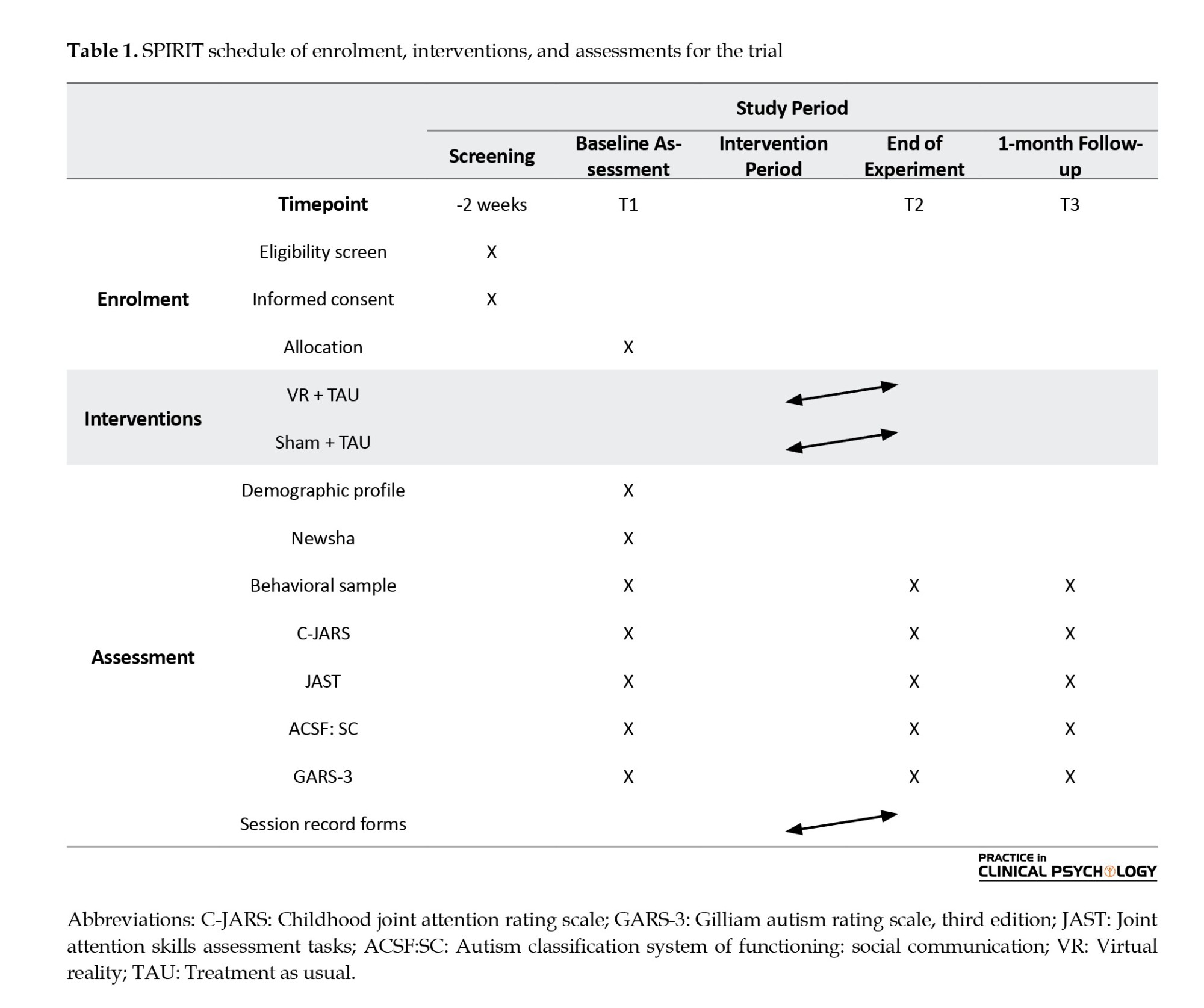 This study will be conducted in a single-blind manner. Participants and their families remain unaware of group allocation post-randomization, and all outcome assessors and the statistician are blinded during baseline, post-intervention, and follow-up assessments. Autism instructors delivering the intervention cannot be blinded, as they must administer either the VR-based therapy or the sham condition. The primary researcher is responsible for securing permissions, recruitment, training therapists, and overseeing intervention procedures, while research assistants support randomization and maintain assessor blinding.