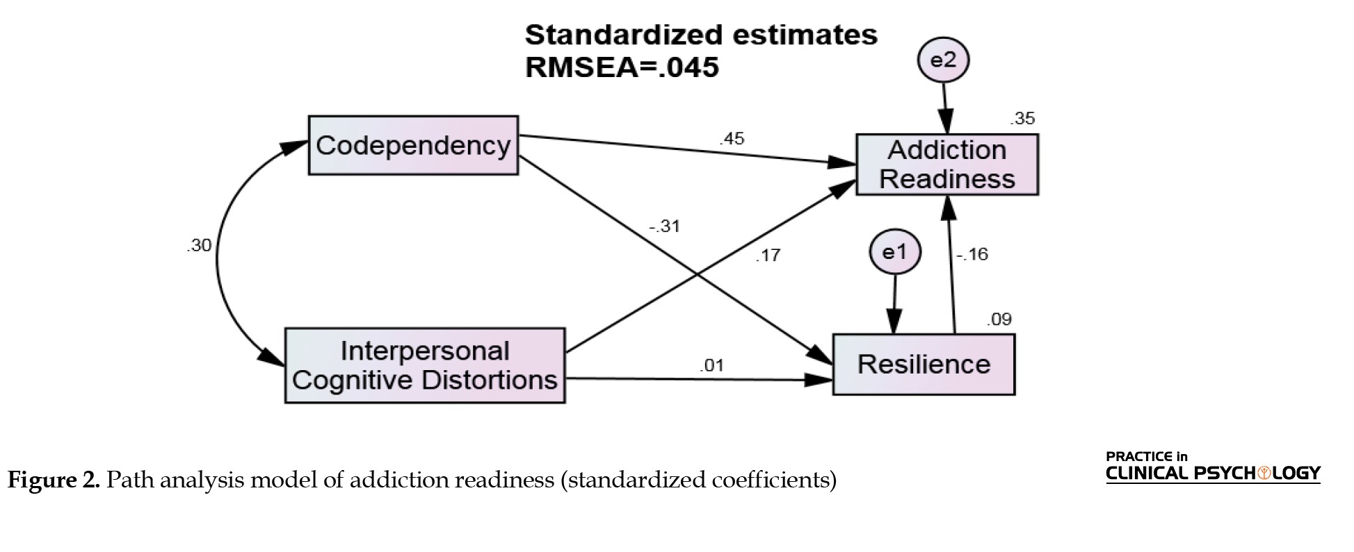 Accordingly, with the increase in co-dependency and interpersonal cognitive distortions, readiness for substance use also increases; meanwhile, higher levels of resilience are associated with a decrease in addiction readiness.