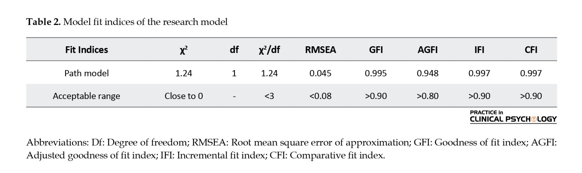 As shown in Table 2, all model fit indices are within acceptable ranges. These results indicate a good fit of the proposed model to the research data.