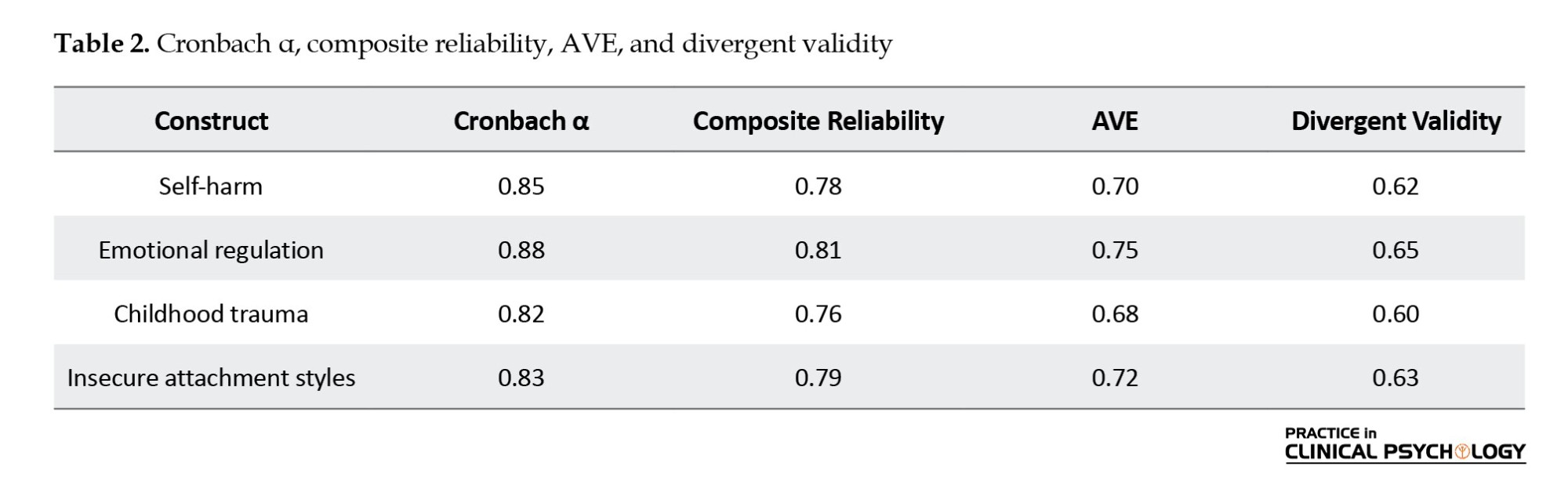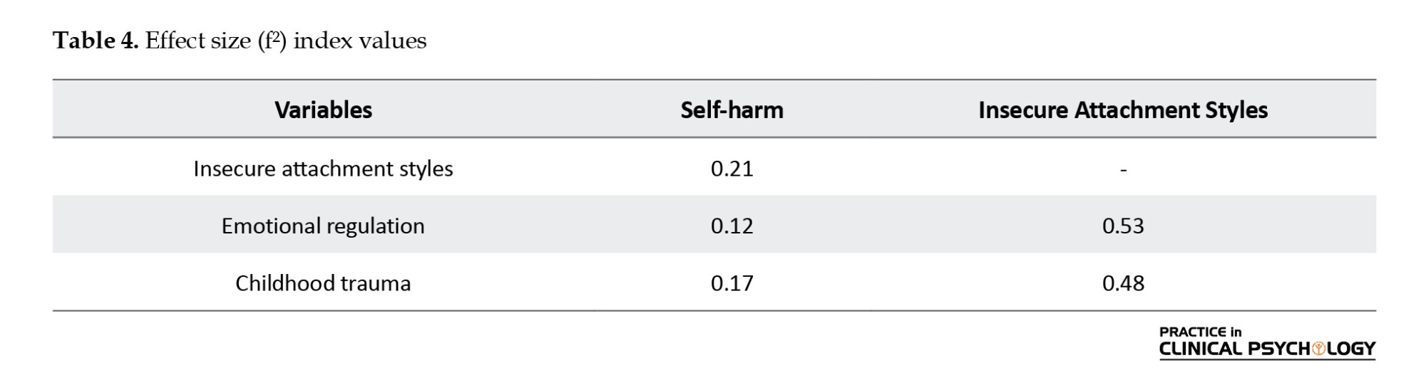 The values of **f²** in Table 4 indicate a suitable effect size for the constructs of cognitive emotion regulation, childhood trauma, and insecure attachment styles.